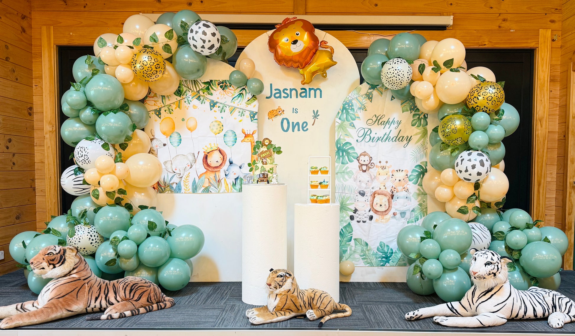 Price includes 3 arch boards with 2 balloon garlands, 3 plush animals, customised vinyl decal on the backdrop, plinth for cake and also a welcome sign on easel with or without photo. Price also includes delivery, setup and packdown within 15km from Papanui/Bishopdale. Extra fee may apply for distant locations.